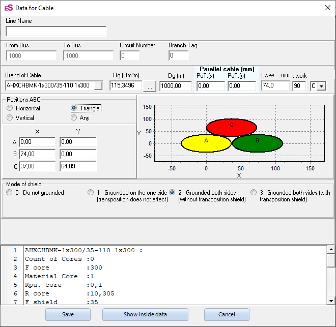 with various earthing modes of lightning-proof cables (isolated from the ground