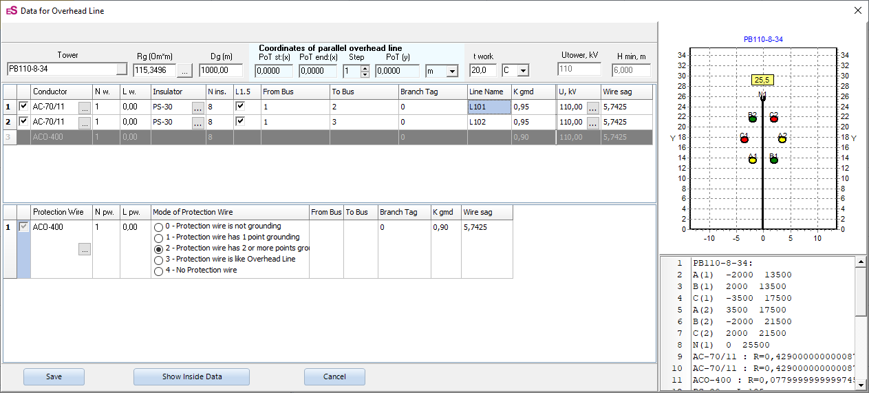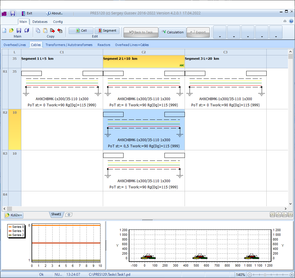 with various earthing modes of lightning-proof cables (isolated from the ground